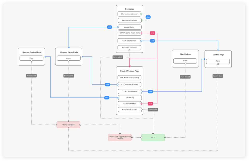Pre & Post Awareness: Blog, Viewing Product Videos, Testimonials, Newsletter signup, Request Demo.