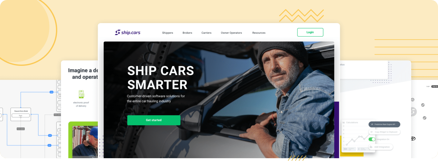Our product team evaluated sites in both the car hauling and b2b startup space. We evaluated design trends, sales funnels, and did a graphics audit. We used these examples to create a mood board and advance the design direction.
